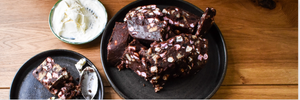 - To serve we would recommend placing the rocky road on a chopping board and serving with a zesty crème fraiche ‘dip’. Put the crème fraiche in a bowl (you’ll need about 1 tbsp per person) and grate in the zest of half a lemon, or as much as you wish, depending on how zesty you’d like it.